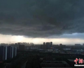 8月18日下午,乌云压顶南京城,天色"黑白分明"似被切割出分界线,短暂"宁静"后城市上空骤然电闪雷鸣、瓢泼大雨,开启"倒水"模式。图为乌云压境。 朱晓颖 摄