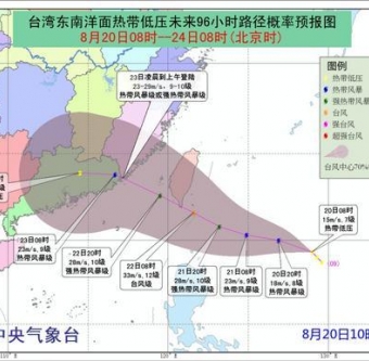 据中央气象台消息,今日凌晨台湾东南洋面有热带低压发展,预计,该低压强度逐渐加强,有可能于未来24小时发展为今年第13号台风,并逐渐向台湾东南部一带沿海靠近。