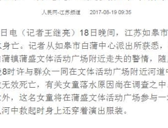 心痛!昨晚,如皋8岁女童走失后不幸落水身亡,小天使一路走好!