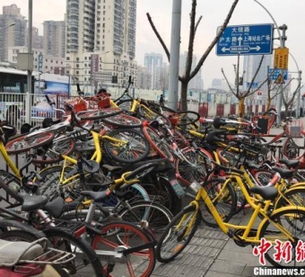 上海站北广场附近被随意堆放的共享单车。王子涛摄中新网上海8月18日电(王子涛马化宇)8月18日,上海市交通委向各共享自行车企业下达了告知书,明确告知从即日起在上海暂停新增投放车辆,一旦发现,将作为严重失信行为纳入企业征信档案,并要求各企业加强对违规停放