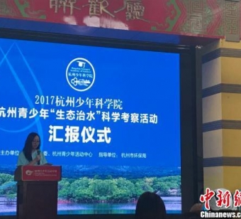 杭州青少年"生态治水"科学考察活动汇报仪式现场。王题题摄中新网杭州8月17日电(王题题)在过去的一周里,一群绿色的小身影穿梭在浙江杭州的部分河道边,拿着各类测水仪器,对部分河道进行水质检测,可以说是杭州河道的一道特殊风景。8月17日,杭州青少年"生态治水"
