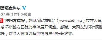 中新网8月16日电据郑州市公安局公共信息网络安全监察支队微博消息,接网友举报,网站"西边的风"(www.xbdf.me)存在大量猥亵女童的视频,目前郑州警方已就此事件展开调查。感谢广大网友对郑州网警巡查执法的关注和信任,欢迎大家继续私信提供其他相关线索。