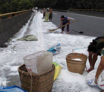 原标题:村民顺走高速路上工业盐路政广播通知:不要食用15日中午,一辆运输工业盐的货运车辆在行至成南高速遂宁段桂花互通时,车上工业盐口袋出现破损,散落长达400米。当地村民在帮忙清扫高速路面的过程中,偷