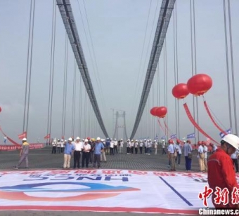 大岳高速洞庭湖大桥合龙。江钻摄中新网岳阳8月15日电(付敬懿江钻)随着最后一节加劲钢桁梁吊装就位,国家主干线杭(州)瑞(丽)高速公路关键控制性工程——大岳高速洞庭湖大桥15日顺利完成合龙。大桥预计2018年春节前建成通车,横贯东西、长达3400余公里的杭瑞高速