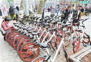 正义路步行街共享单车停车点。本报记者杨峥摄本报讯(记者胡晓蓉)昨日,摩拜单车联合昆明市城管局、昆明市网络文化协会等单位联合发起昆明首个共享单车文明停放倡议活动,助力文明城市建设。近一年来,共享单车迅速发展,成为城市绿色交通体系不可或缺的组成部分,