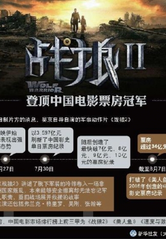 美媒称,算上网上购票,吴京的《战狼2》在14天中的总票房达到5.939亿美元(1美元约合人民币6.7元——本网注),这部影片本周几乎必定会成为史上在单一地区最卖座的影片之一。