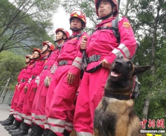 8月12日上午,黄金72小时过后,国家救援队集结准备进入九寨沟景区,再次展开搜救工作。 中新社记者 张浪 摄