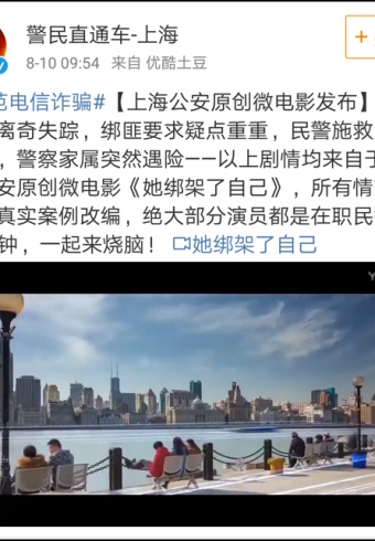 今天上午,上海公安发布了原创微电影《她绑架了自己》。