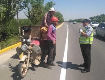 临渭交警交斜中队辖区开展三轮车、货车、客车违法专项整治