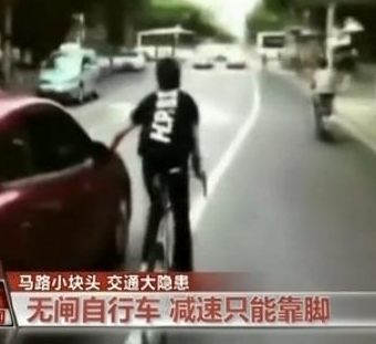 俗话说,勿以恶小而为之。在交通出行中,一些看似并不严重的违法违规行为,实际上却潜藏着危及生命的重大隐患。 无闸自行车 减速只能靠脚 骑上单车,在马路中间闪转腾挪,甚至还顺手把汽车的后视镜给合上了。最近,这段视频在网络上热传。骑单车的上海高中生