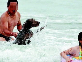夏天天气炎热,很多市民到海滨浴场去游泳,但是也有些人带着宠物狗来,这些狗随地拉撒不说,还有个别市民让狗下水畅游,一些泳者为此受到惊吓。