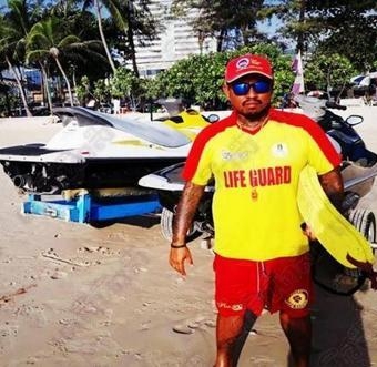 汤萨。(泰国《世界日报》)据泰国《世界日报》报道,网友(CharlieJetski)于当地时间31日发帖赞扬一名泰国救生员拾金不昧的善举,指出该救生员在执行职务时,意外发现中国籍游客遗落的钱包,但他并未据为己有,反而积极寻找失主,最终顺利将失物归还失主。
