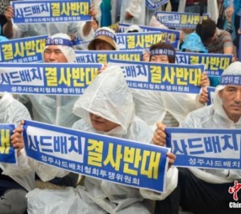 中新社首尔7月31日电(记者吴旭)韩国反"萨德"市民团体31日在韩国总统府青瓦台附近冒雨举行集会,抗议韩国政府日前作出追加部署"萨德"发射车的决定。当日,韩国星州郡、金泉市等地居民及反"萨德"市民团体原计划于11时在青瓦台喷泉广场前举行集会,但遭到警方制止,