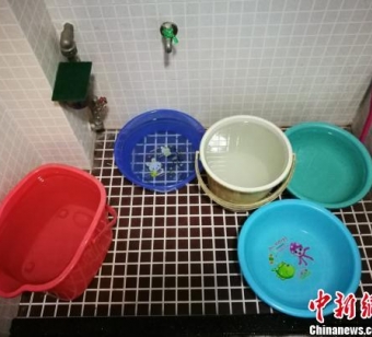 图为业主用各种盛器蓄水。钟欣摄中新网宁德7月31日电(记者叶茂)眼下正是炎炎夏日,但大热天没水用,这让家住福建宁德市建闽小区的业主很烦躁。停水无人受理、自来水公司"管不着",让业主们更是"火上浇油"。30日傍晚,中新网记者来到建闽小区时,家住1号楼4层的林女