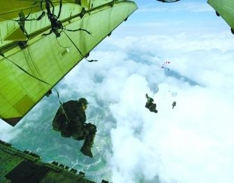 空降兵从高空跳出机舱。很多人会记得中学课本里那篇写于抗美援朝时期的报告文学《谁是最可爱的人》,半个多世纪过去,时空巨变,答案不变。人民军队人民爱,人民军队爱人民。为了人民利益勇于牺牲奉献,是这支军队的本色。在抗洪抢险的大堤上,在抗震救灾的第一线,
