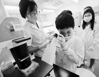 本报讯(记者刘欢)在专业医生指导下探索生命密码,与医用显微镜、离心机来个亲密接触,去微生物王国里感受细胞、基因的奇妙……昨天,北京天坛医院科普训练营正式开营,十余名中小学生走进医院临床医学研究实验室,实地探索医学奥秘。换上小白大褂,戴上口罩,领取胸