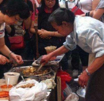 老奶奶路边摆摊卖麻辣小吃20年, 美女想吃后都排长队来购买