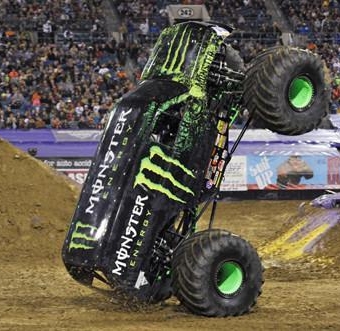 资料图:猛事特能量。中新网北京7月30日电(王禹)7月29日晚,全球人气娱乐表演项目"疯狂大脚怪"完成了在鸟巢的首秀。十辆风格迥异的大脚怪汽车同台PK,最终经过两小时紧张对抗,"猛事特能量"收获竞速赛和自由竞赛两个冠军,成为当晚活动最大赢家。疯狂大脚怪是一个