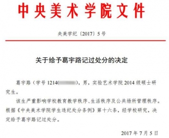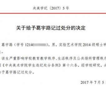 原标题:中央美院相关负责人谈葛宇路被处分:会公布原因,请爱护学生继毕业设计自制“葛宇路”路牌事件引发关注后,刚毕业的中央美术学院实验艺术学院2014级研究生葛宇路又因学院近日公