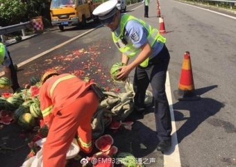 炎炎夏日高速翻车,暖暖交警帮忙拾瓜
