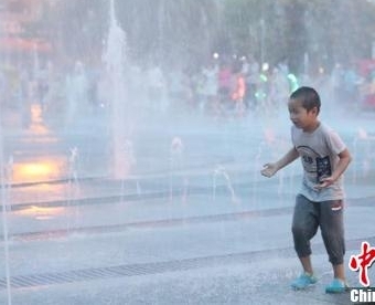 四川华蓥气温高达42.7℃ 市民晚上音乐喷泉觅清凉