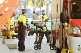 7月28日,在西班牙巴塞罗那,医护人员运送伤者。据西班牙紧急情况部门消息,巴塞罗那市中心一火车站28日早高峰时段发生一起列车事故,造成至少48人受伤,其中5人伤势严重。