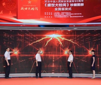 人民日报社副社长张建星(右二)、中国邮政集团公司副总经理张荣林(左二)、中国邮政集团公司报刊发行局局长曹建申(左一)、《环球人物》杂志总编辑谢湘(右一)在人民网1号演播厅共同启动了《中国人民解放军建军