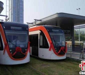 图为,通车仪式现场周明德摄中新网武汉7月28日电(周明德张敏徐金波)28日,武汉经济技术开发区现代有轨电车车都T1线正式通车,至此武汉迈入"有轨电车时代"。这条华中地区的首条有轨电车线路,实现与武汉地铁3号线无缝接驳,今后还将与武汉地铁16号线衔接,打造出更完