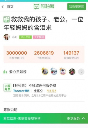 湖南日报·新湖南客户端10月10日讯(见习记者 张璇 通讯员 许伟军 李雨桑)10月9日晚,岳阳县一位名叫小阳的网友在朋友圈发布了一条《救救我的孩子、老公,一位年轻妈妈的含泪求》的“轻松筹”求助信息,筹款目标金额200万元。该帖发布后,广大爱心网友纷纷转