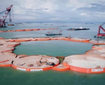 广东省交通集团7月27日称,目前在建的深中通道西人工岛进展顺利,该岛钢圆筒已累计振沉46个,占全部约81%,预计8月份可以完成全部钢圆筒的振沉施工。按照计划,深中通道将于2024年建成通车。中新社记者 欧阳征朝 摄
