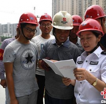 中新网7月27日电安监总局统计司司长、新闻发言人苏洁27日表示,今年上半年全国安全生产继续保持稳定好转的良好态势,但安全生产形势依然严峻,上半年发生重大事故15起、死亡195人,同比增加1起、8人。资料图:6月27日,安徽省安监工作人员进工地给农民工普及安全生