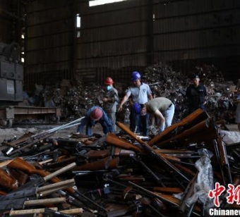 贵阳警方集中销毁一批非法枪爆物品。瞿宏伦摄中新网贵阳7月27日电(石小杰)7月27日,贵阳警方集中销毁一批非法枪爆物品。记者在销毁现场看到,非法枪支、管制器具堆积的密密麻麻。警方现场清点完毕后,将公务用枪300余支,非法枪支186把,仿真枪264支,管制刀具5428