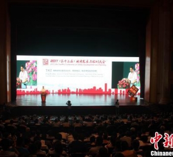 "2017(第十二届)城市发展与规划大会"27日在海口市开幕,图为开幕式。王子谦摄中新网海口7月27日电(记者王子谦)"2017(第十二届)城市发展与规划大会"27日在海口市开幕。与会专家学者将围绕提高城市规划建设水平、推进生态修复与城市修补等话题展开研讨。