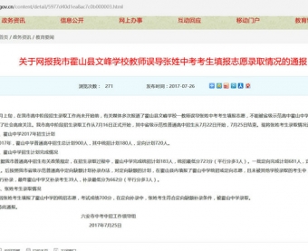 原标题:“700分上职高”考生已被录取教育局:符合缺额补录法制晚报·看法新闻讯(记者 杜雯雯)7月26日中午,法制晚报·看法新闻独家获悉,安徽霍山&