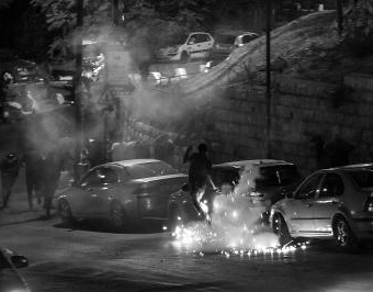 7月25日凌晨,在耶路撒冷老城通往圣殿山(穆斯林称为"尊贵禁地")的主要入口狮子门外,抗议者躲避以色列警察投掷的爆震弹。新华社记者郭昱摄综合新华社报道以色列总理办公室25日凌晨发表声明说,以色列安全内阁已经决定拆除安装在耶路撒冷老城圣殿山(穆斯林称为"尊