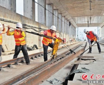 昨日下午5时许,长株潭城际铁路铺轨工人来到城铁湘江隧道口,准备进行铺轨作业。长沙晚报记者王志伟摄长沙晚报讯(记者陈焕明通讯员周全实习生贺红)昨日下午5时许,长株潭城际铁路铺轨工人吴株周和几十名同事来到城铁湘江隧道口,他们要为当晚即将到来的长轨运输车