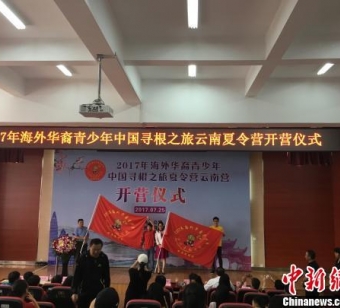 图为夏令营开营杨苏莹摄中新网昆明7月25日电(马骞杨苏莹)25日,由德国、西班牙华裔青少年一行67名师生参加的"中国寻根之旅"夏令营在昆明开营。这群海外华裔青少年将在昆明和丽江开展为期12天的交流活动,通过课程学习和文化考察,加深对中国的了解及对中华文化的