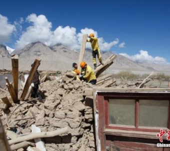 中新社北京7月25日电(记者张希敏)中国国家减灾委员会办公室常务副主任、民政部救灾司司长庞陈敏25日在北京召开的第三季度例行新闻发布会上说,截至目前,2016年全国因灾倒损房屋重建和修缮竣工率均达九成以上。资料图:5月11日5时58分,新疆塔县发生5.5级地震。截