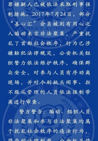 人民网北京7月24日电 据北京市公安局官方微博消息,近日,公安部统一部署依法对深圳市善心汇文化传播有限公司法定代表人张天明等人涉嫌组织、领导传销活动犯罪问题进行查处,张天明等多名犯罪嫌疑人已被依法采取刑事强制措施。2017年7月24日,部分“善心汇”