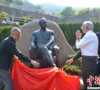 铜像揭幕仪式。吴波摄中新网杭州7月24日电(谢盼盼童笑雨)一生青春功德在,万年庆余日月知。7月24日,在音乐声中,一代国药巨匠冯根生先生的安葬送行仪式在浙江杭州安贤陵园举行。仪式现场,300余名亲友、员工和社会各界人士共同见证了其纪念铜像的揭幕。生于1934