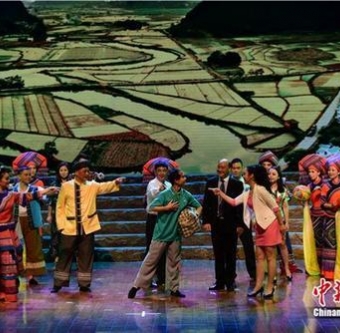 外出务工的村民阿六返乡创业中新网7月24日电7月22日至23日晚,广西现代壮剧《第一书记》在北京民族文化宫大剧院参加2017年全国基层院团会演。该剧由广西壮族自治区文化厅扶持打造、广西德保县马骨胡艺术中心排演,广西戏剧院壮剧团全程指导。曾荣获第九届广西戏