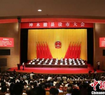 陕西神木撤县设市。王永平摄中新网陕西榆林7月23日电(王永平)23日,陕西神木举行"撤县设市"大会暨授牌仪式。标志着"神木县"已成历史,作为榆林市第一个县级市,神木市正式成立。陕西神木撤县设市。王永平摄陕西省榆林市市长尉俊东说,国家20年后重启撤县设市工作,