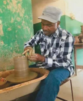 加耶尔在制作陶器在一场"尼日利亚人眼中的中国"艺术展上,记者被几件颇具中国特色的陶艺作品吸引,并由此与其创作者乔瑟夫·加耶尔结识。经过2小时车程,记者一行来到距离尼日利亚首都阿布贾市中心45公里的一个村庄。走进加耶尔工作的小院,这里简陋、幽静,加耶尔