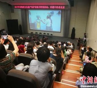 "非遗中的老北京"访谈现场可通过大屏幕看到外场活动应妮摄中新网北京7月21日电(记者应妮)由文化部非物质文化遗产司、国家图书馆和北京联合大学艺术学院联合承办的"非物质文化遗产保护讲座月"特别活动——"非遗中的老北京"在国家图书馆举办。