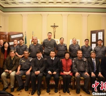 图为圣保罗部分结业军警与中国驻圣保罗总领馆官员、华人侨领合影。莫成雄摄中新网圣保罗7月20日电题:别开生面的巴西圣保罗军警汉语班结业式中新网记者莫成雄"白日依山尽,黄河入海流。欲穷千里目,更上一层楼。"巴西圣保罗军警何塞朗读的唐诗博得满堂喝彩。"春