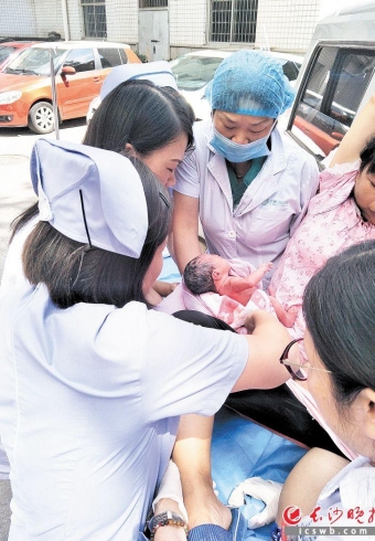 高龄产妇童女士突发早产,医护人员正在紧急施救。市三医院供图长沙晚报讯(记者彭放通讯员唐梦辉王泽芳)"快来人啊!有孕妇快生啦!"昨日,40岁的童女士突发早产,刚赶到市三医院停车坪就在车里产下宝宝,经过医护人员紧急施救,避免了产后大出血和新生儿急性感染发生,