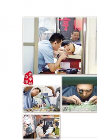 图①修表师正在耐心为前来咨询业务的顾客答疑解惑。图②修表师正在给维修好的手表加装表盖。图③"亨得利"老字号品牌深得消费者的信任和喜爱。图④修表师正在检查手表零件。在山东青岛流传着这样一个顺口溜:"头戴盛锡福,脚踏新盛泰,手戴亨得利,吃饭劈柴院,有病