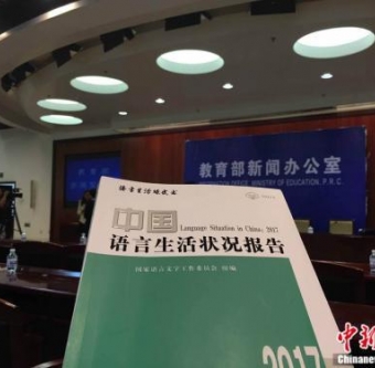 中新网北京7月18日电(记者阚枫)18日,教育部、国家语委在北京发布的《中国语言生活状况报告(2017)》显示,洪荒之力、吃瓜群众等成为2016年中国媒体十大新词语,而葛优躺、辣眼睛、全是套路等成为年度网络用语。7月18日,教育部、国家语委在北京发布《中国语言生活