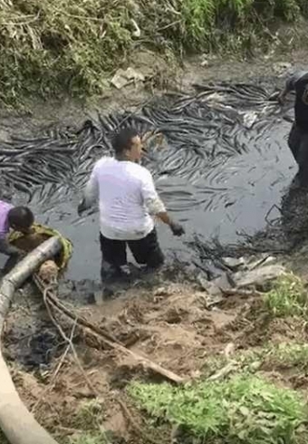 村里几年没干的河沟,出现的一幕令人高兴