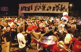 7月9日,在伊拉克巴格达,人们载歌载舞庆祝摩苏尔战役取得胜利。伊拉克总理兼武装力量总司令海德尔·阿巴迪9日宣布,政府军在摩苏尔战役中取得胜利。